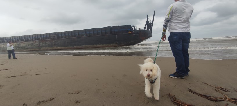 Debido a los fuertes vientos del norte y oleaje a causa del Frente Frío número 9, la barcaza LM3004 Panamá encalló en las playas de Coatzacoalcos este mediodía
