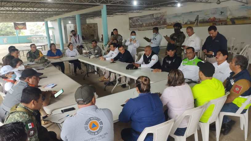 Nanchital, Ver. – La Alcaldesa Esmeralda Mora Zamudio y la Dra. Guadalupe Osorno Maldonado,Titular de la Secretaría de Protección Civil Estatal, se reunieron esta mañana con autoridades de SEDENA, MARINA, especialistas de ductos y de la gerencia de seguridad física de PEMEX, así como elementos de Policía Estatal y Policía Municipal, Tránsito del Estado y Sistema DIF Municipal.