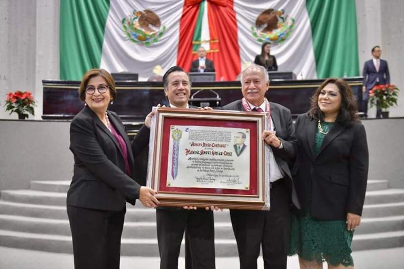 Poderes otorgan Medalla Adolfo Ruiz Cortines al ingeniero agrónomo Manuel Gómez Cruz