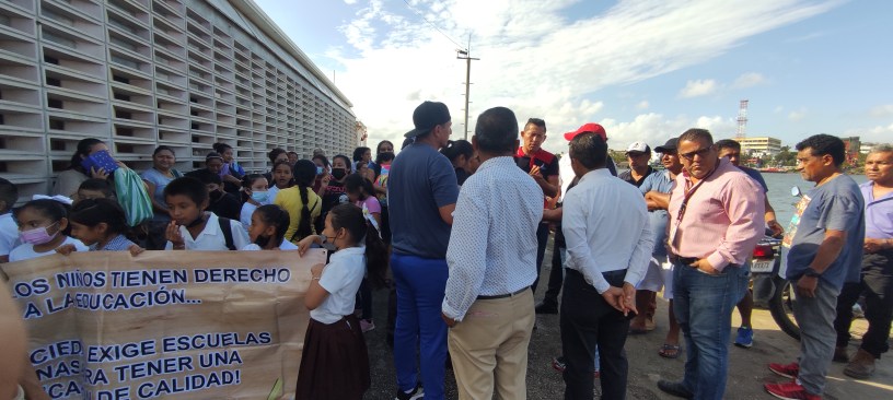 «El Gobierno de Amado Cruz Malpica nos prometió la construcción de aulas digas desde el pasado mes de octubre y hasta fecha no han hecho nada y nuestros niños están en constante riesgo por ellos los padres de familia tomaron la decisión de bloquear el transbordador» dijo el director de la escuela primaria Independencia.
