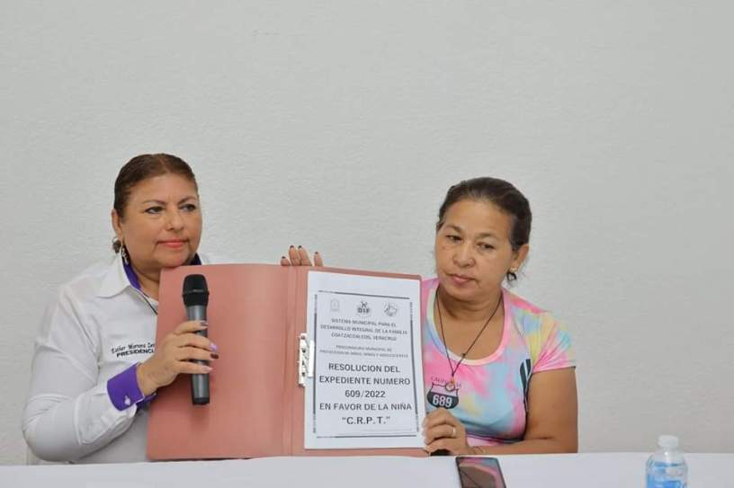 Coatzacoalcos, Ver a 17 de enero de 2023.- Gracias a la asesoría legal del DIF Municipal de Coatzacoalcos que preside la señora Esther Mortera Zetina y las gestiones del gobierno local que dirige el licenciado Amado Jesús Cruz Malpica se logró la tutoría legítima de una menor de cuatro años bajo el nombre con iniciales de C.R.P.T. cuya madre Anahi Michelle “N” fue víctima de feminicidio en febrero del 2022.