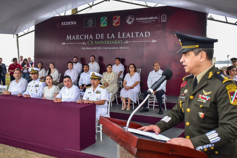 Coatzacoalcos, Ver., 9 de febrero de 2023.- El presidente municipal, Amado Cruz Malpica, asistió a la conmemoración del 110 aniversario de la Marcha de la Lealtad que se llevó a cabo la mañana de este jueves en el Hemiciclo a los Niños Héroes.