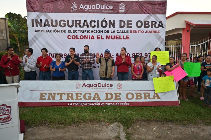 Agua Dulce, Ver. – Obras por un millón 584 mil 778.45 pesos inauguró este jueves el alcalde José Noé Castillo Olvera en la colonia El Muelle, ante el júbilo de cientos de familias, satisfechas con la ampliación de la red eléctrica en las calles Benito Juárez y Alberto Ramírez.