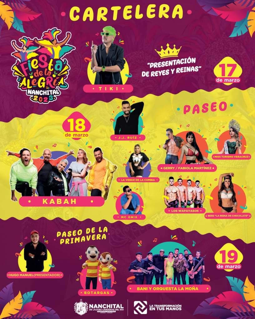 Nanchital, Ver. – Presentando lo mejor de su repertorio para hacer bailar y cantar a varias generaciones, el próximo 18 de marzo llegará a este municipio el grupo de pop KABAH, como parte de los espectáculos de la Gran “Fiesta de la Alegría Nanchital 2023”, que se llevará a cabo del 17 al 19 de marzo.