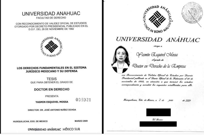 CD. DE MÉXICO, MX.- La ministra de la Suprema Corte de Justicia de la Nación (SCJN) Yasmín Esquivel plagió la tesis con la que obtuvo en 2009 el grado de doctora en Derecho por la Universidad Anáhuac, una escuela privada de México.