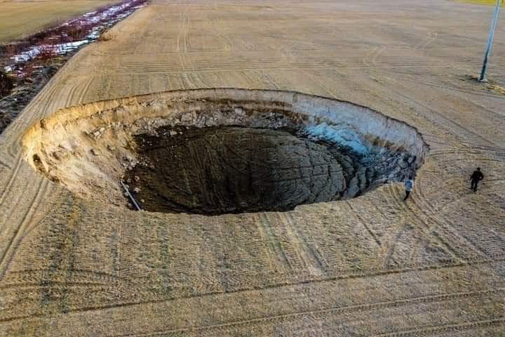 De acuerdo a la información emitida por la agencia de noticias Anadolu, el socavón en Turquía del suelo fue detectado por habitantes de la localidad de Karapinar, en la provincia turca de Konya, y tiene una dimensión de entre 12 y 15 metros de profundidad, así como 100 metros de diámetro.