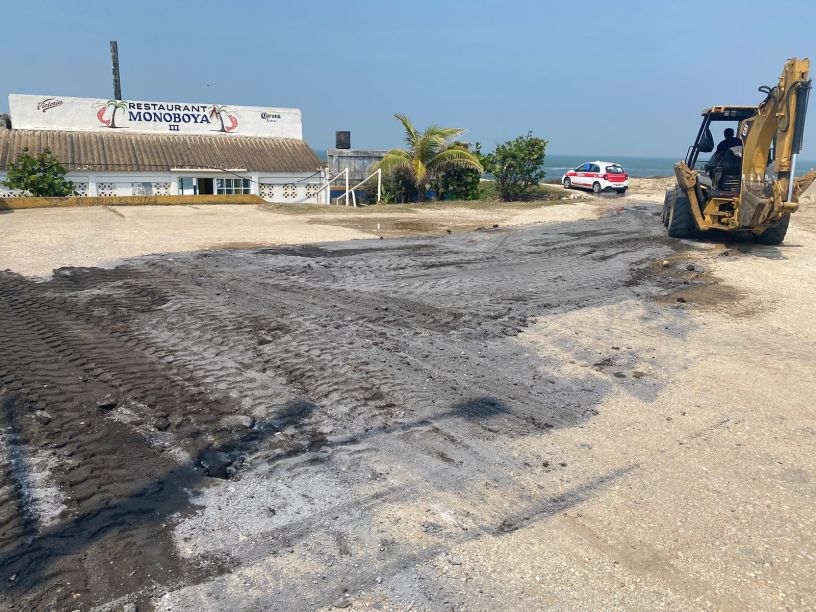 Dentro de los trabajos de rehabilitación se colocó asfalto y mineral proporcionado por la empresa Protexa y limpieza de arena para el acceso de los visitantes durante las vacaciones de semana santa.