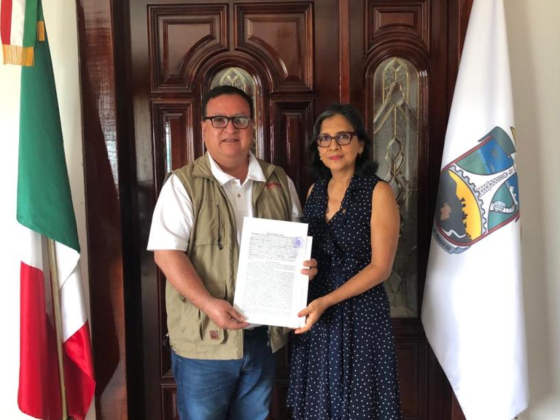 Agua Dulce, Ver. – En esta ciudad el Campus de la Universidad Veracruzana se ha consolidado, gracias a la voluntad política del alcalde José Noé Castillo Olvera, quién recibió a la vicerrectora de la región Coatzacoalcos, Dra. Georgina Hernández Ríos, la cual reiteró su gratitud a las autoridades municipales por su disponibilidad para dar certeza jurídica al predio y edificio que ocupará a partir del próximo ciclo escolar.