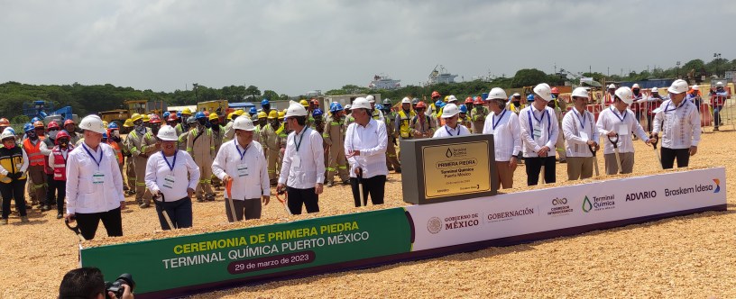 Braskem Idesa y Advario, socios en la construcción y operación de la Terminal de Importación de Etano, Terminal Química Puerto México colocan la primera piedra, lo que inicia esta importante obra de infraestructura, inversión estimada en 400 millones de dólares