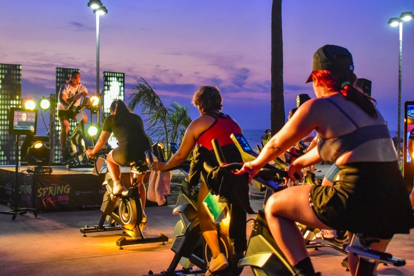 Coatzacoalcos,Ver., 5 de abril del 2022.- El Gobierno de Coatzacoalcos que representa Amado Jesús Cruz Malpica, en coordinación con el gimnasio Black Intensity, iniciaron las actividades de playa promoviendo el deporte durante las vacaciones de Semana Santa con un maratón de Spring Cycling gratuito para la ciudadanía.