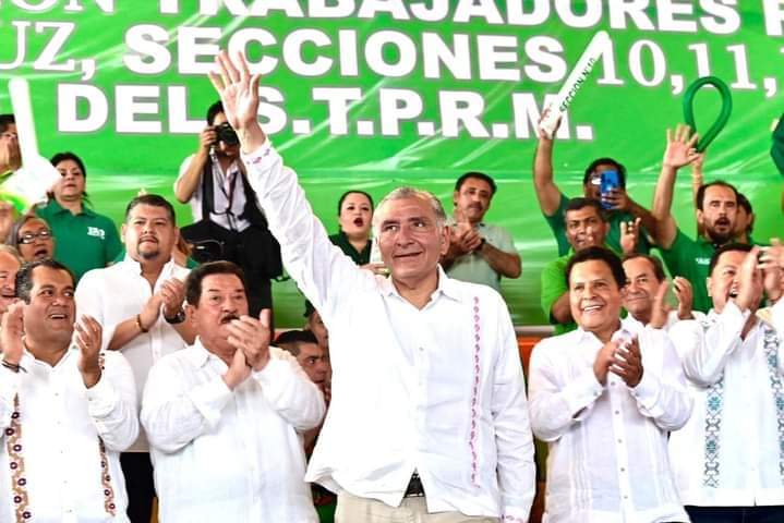 «Petroleros con Adán, petroleros con Adán» fue la porra unánime de más de siete mil gargantas para el secretario de Gobernación, Adán Augusto López Hernández en Centro de Convenciones de Minatitlán.