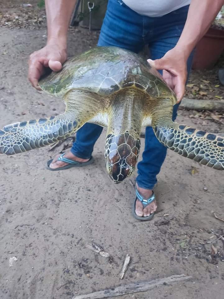 En Semana Santa, la Fundación Caretta atendió el varamiento de una tortuga marina verde o blanca (nombre científico chelonia mydas), rescataron el ejemplar y fue atendida por un biólogo marino y médico veterinario del equipo del campamento.