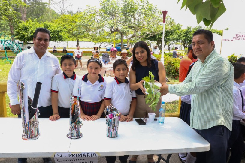 Por otra parte, los alumnos participantes del Concurso Recicla y Crea, presentaron a las autoridades municipales las manualidades elaboradas por ellos mismos a base de material reciclado, resultando ganadores las niñas y niños de la Carolina Carreón.