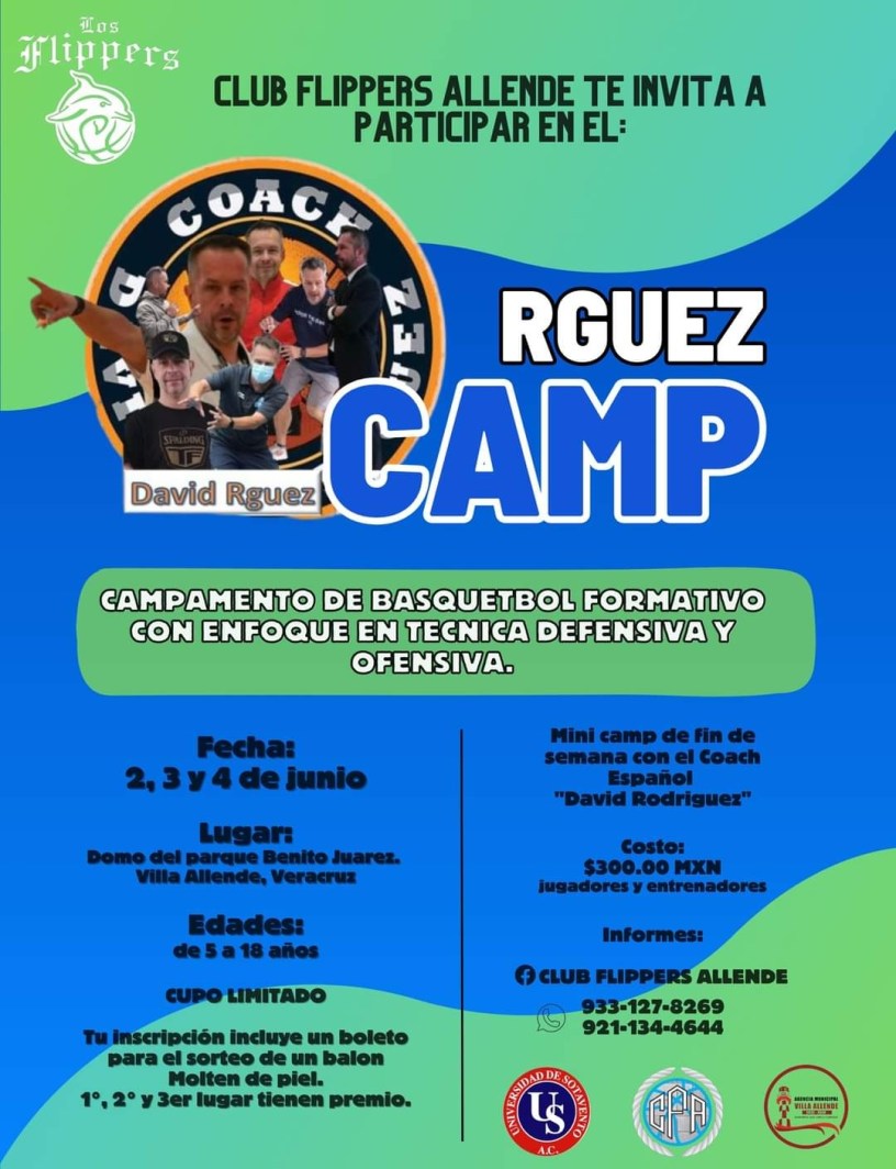 Coatzacoalcos, Ver. 29 de mayo del 2023. – Con el objetivo de impartir enseñanzas de básquetbol formativo con enfoque en técnica defensiva y ofensiva, el coach español David Rodriguez realizará el primer campamento internacional en villa Allende del 2 al 4 de junio.