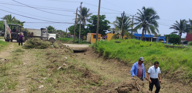 Coatzacoalcos, Ver. 1 de junio de 2023. -Con el objetivo de prevenir inundaciones iniciaron los trabajos de limpieza con el apoyo de maquinaria en los canales a cielo abierto de villa Allende que representan un riesgo ante las inminentes lluvias.