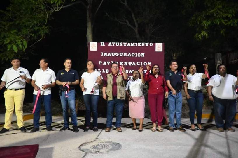 Agua Dulce, Ver. – El alcalde Noé Castillo Olvera, inauguró la construcción del drenaje sanitario y pavimentación con concreto de la calle Buenaventura entre San Marcial y San Moto de la colonia Emiliano Zapata.