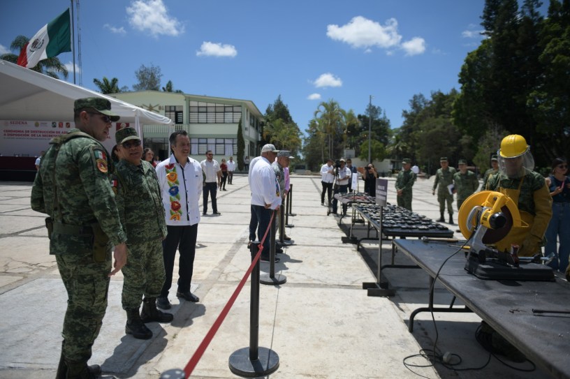 La supervisión del evento estuvo a cargo del comandante de la 26/a Zona Militar, General Rubén Zamudio Matías, quien precisó que por la destrucción realizada en marzo y esta ocasión suman 255 armas, 252 cargadores y 4 mil 763 cartuchos que han dejado de representar un riesgo a la población.