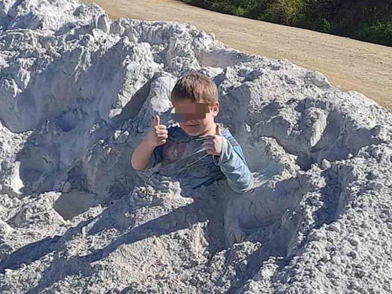 Un niño de 7 años murió momentos después de que lo fotografiaran jugando en un montón de polvo de piedra caliza, sustancia que le provocó una reacción tóxica.