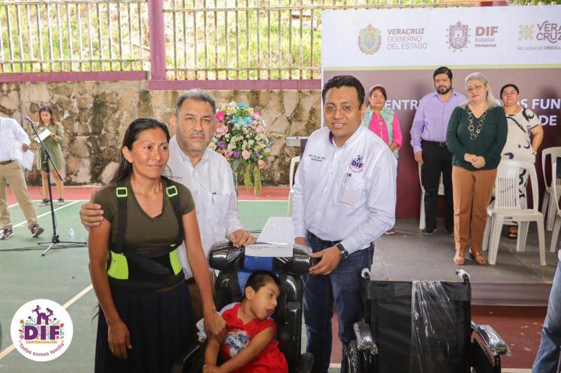Coatzacoalcos, Ver a 24 de agosto de 2023.- Un total de 68 personas que padecen de alguna discapacidad y se encuentran en situación vulnerable, fueron beneficiados con la entrega de Apoyos Funcionales para la Salud Integral de las Familias 2023, programa que impulsa el DIF Estatal a través del DIF municipal que preside Esther Mortera Zetina.