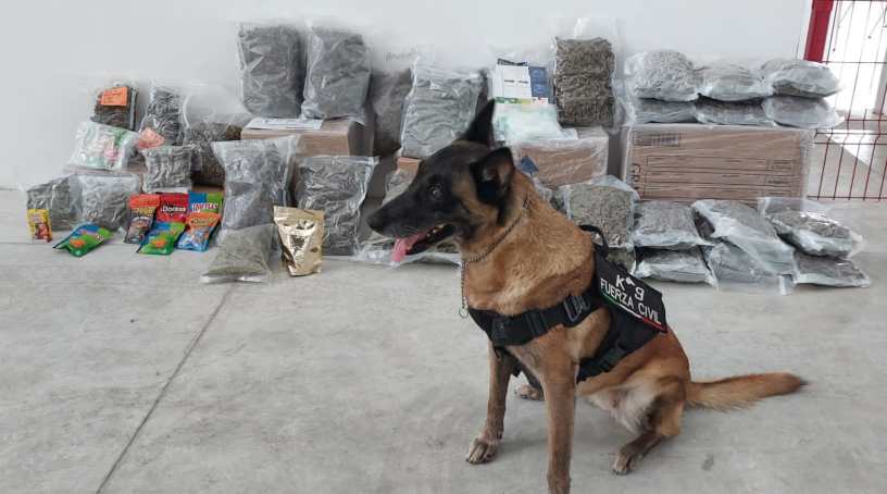 Los hechos ocurrieron cuando los oficiales llevaban a cabo un operativo en un establecimiento dedicado al envió de paquetería en la colonia Jacarandas, ahí los agentes caninos hicieron un marcaje positivo a quince paquetes.