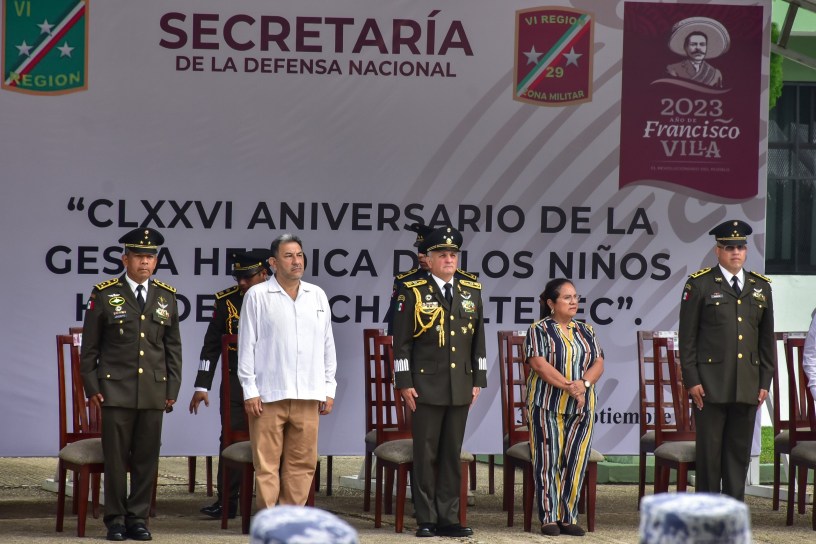Para llevar a cabo la ceremonia cívica, el presidente acudió a la Vigésima 29 zona militar a cargo del General de Brigada de Estado Mayor, Miguel Ángel López Martínez, donde se rindieron honores a la bandera y se inauguró el «Hemiciclo a los Niños Héroes» con motivo de los 200 años del Heroico Colegio Militar.