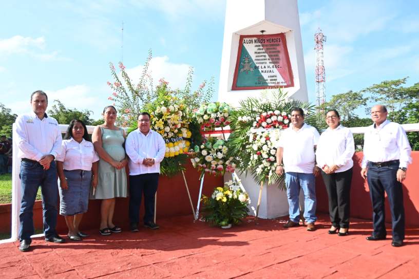Acompañado de ediles, instituciones educativas, sector sindical y equipo de trabajo, el maestro Castillo Olvera colocó una ofrenda floral en el parque Niños Héroes, ubicado en la colonia Cuatro Caminos.