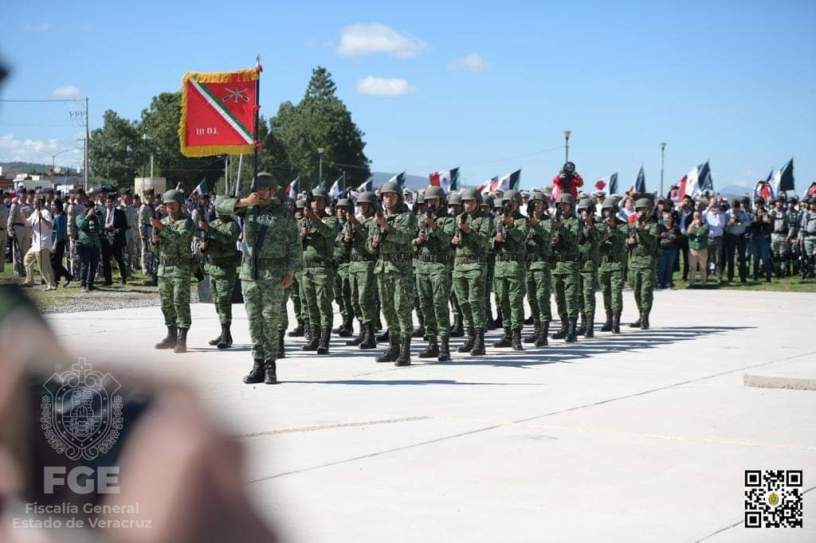 Hoy, el 111/o Batallón de Infantería estuvo a cargo de los Honores a la Bandera, la salva de fusilería y el Toque de Silencio; el pase de lista rememoró también al teniente José Azueta y el cadete Virgilio Uribe, de la Heroica Escuela Naval Militar, quienes contuvieron la invasión norteamericana de 1914 al Puerto de Veracruz.