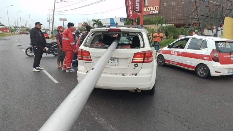 De forma trágica falleció el conductor de una camioneta después de ser aplastado por un poste que cayó encima de la camioneta en que circulaba esta tarde sobre la avenida Universidad, a la altura de la zona de hoteles de la colonia Las Gaviotas.