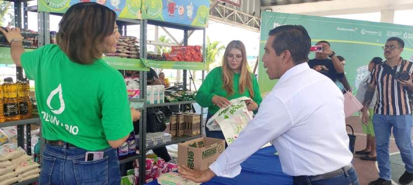 Cecilia Lormendez López coordinadora de responsabilidad social de Braskem Idesa, explicó que el evento tuvo la finalidad de promover la educación y la cultura del reciclaje a través del canje de residuos plásticos por productos de la canasta básica e incluso de aseo personal.