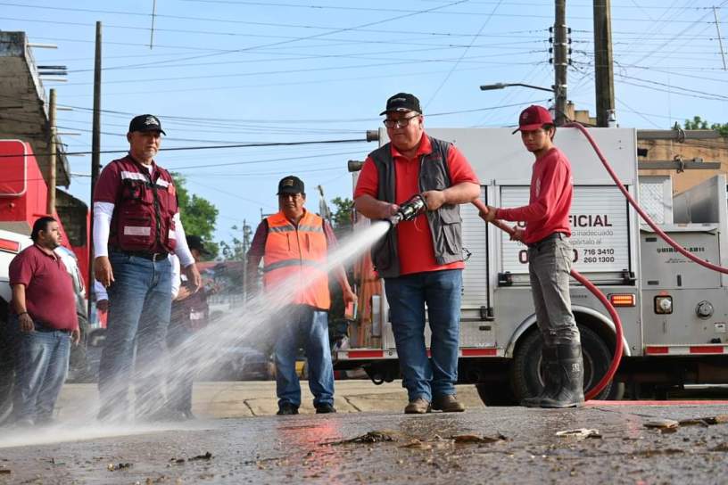 El alcalde mencionó que, para la realización limpieza se utiliza maquinaria pesada, volteos, pipas con agua, además de un camión tipo Vactor para el desazolve de los registros que se obstruyeron con basura.