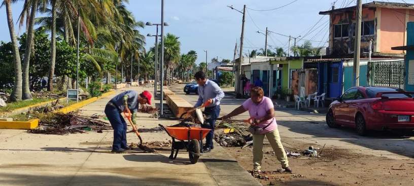 Desde temprana horas, se intensificaron las labores de limpieza en la zona del malecón ribereño y en la colonia Centro que fueron afectadas por el temporal.