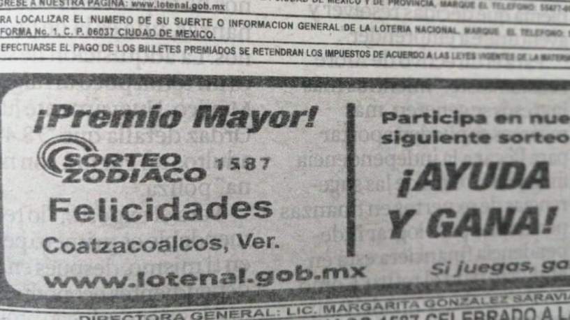 Maythe Morales Ramos.- La Lotería Nacional llevó a cabo el sorteo del Zodiaco cuyo número ganador una vez más fue adquirido en la ciudad y puerto de Coatzacoalcos.