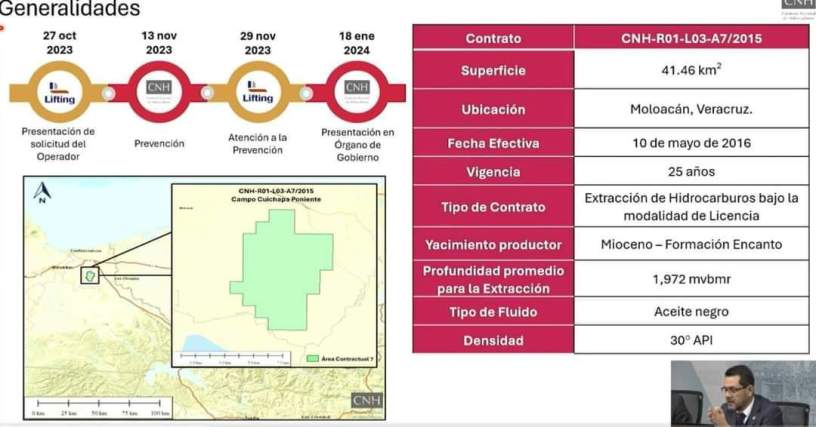 La Comisión Nacional de Hidrocarburos (CNH) autorizó, el pasado 18 de enero, al operador Servicios de Extracción Petrolera Lifting de México una modificación al plan de desarrollo para el contrato CNH-R01-L03-A7/2015, para la extracción de estos pozos de hidrocarburos en la modalidad de licencia.