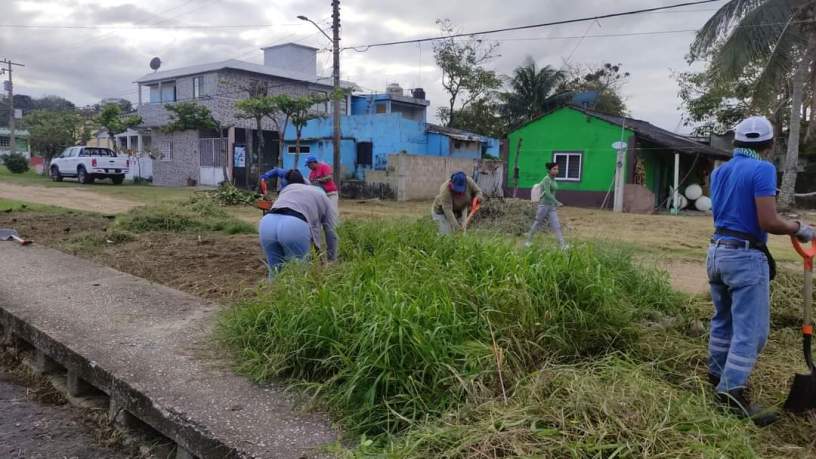 Coatzacoalcos, Ver. Continúa la limpia en calles de villa Allende, esta mañana personal de la agencia municipal realizan chapeo en el camellón central de la calle Zamora de la colonia Pescadores.