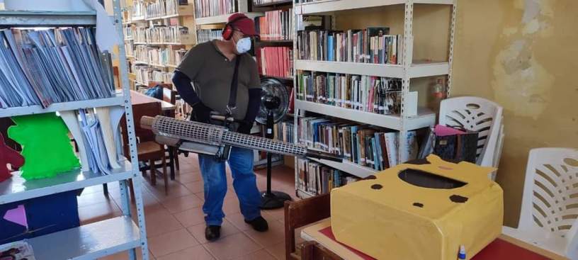 Coatzacoalcos, Ver. Como parte de las acciones preventivas para evitar los riesgos de contagio de las enfermedades respiratorias, el Gobierno Municipal de Coatzacoalcos, a través de la Dirección de Salud Pública Municipal, realiza la sanitización de las 7 bibliotecas públicas municipales.