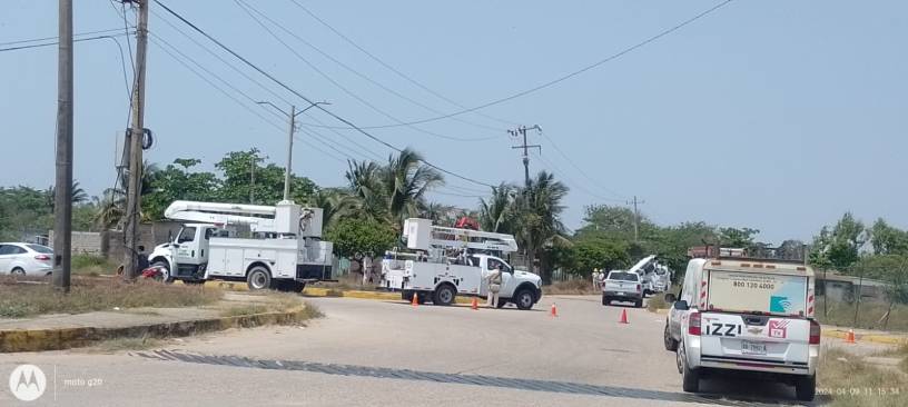 Se observó una cuadrilla del área de mantenimiento de la CFE en la glorieta del fraccionamiento Rabón Grande, y así como también del personal de telefonía quienes realizan las conexiones del cableado.