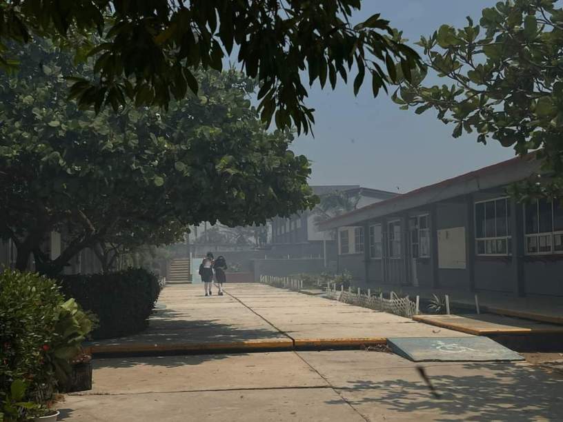 El fuego se extendió en pocos minutos debido a los vientos del sur, por lo que una gran columna de humo cubrió por completo toda la escuela.