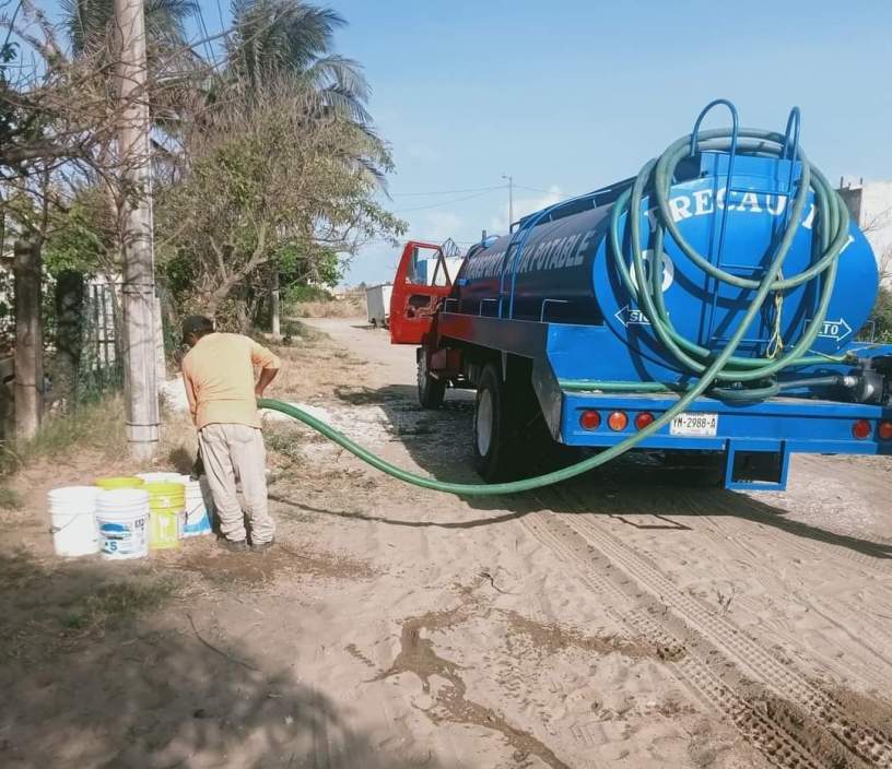 La atención para el suministro de agua potable a través de pipas se extendió a colonias como Benito Juárez Norte, Antonio Luna y Lomas de Barrillas, donde el servicio no llega con suficiente presión para surtirse de manera ordinaria.