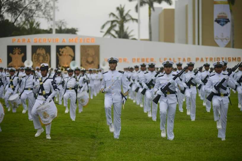 Finalizado el evento, los cadetes de la Heroica Escuela Naval Militar desfilaron frente al Comandante Supremo de las Fuerzas Armadas y los altos mandos de la Marina-Armada y Defensa Nacional.