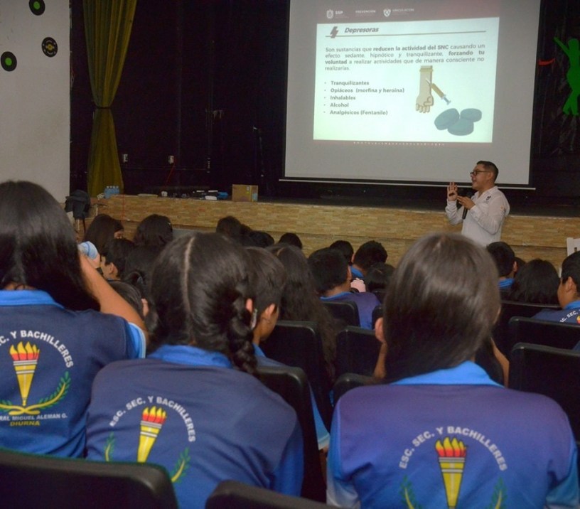 Durante la charla, la SSP ofreció consejos de autocuidado, protección y convivencia, disertó temas como el abuso de sustancias, en qué consisten y cuáles son los tipos. Además, a través de un video, les mostraron historias reales de personas que se encuentran recluidos por delitos contra la salud.