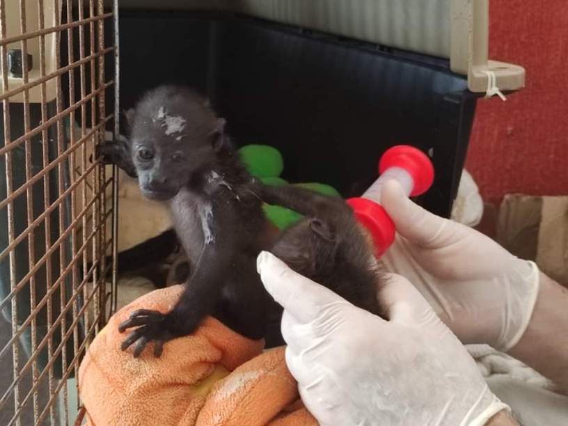 Tres crías de mono, fueron rescatados por ambientalistas en la zona Coatzacoalcos-Minatitlan, luego que sus madres murieron aparentemente por golpe de calor.