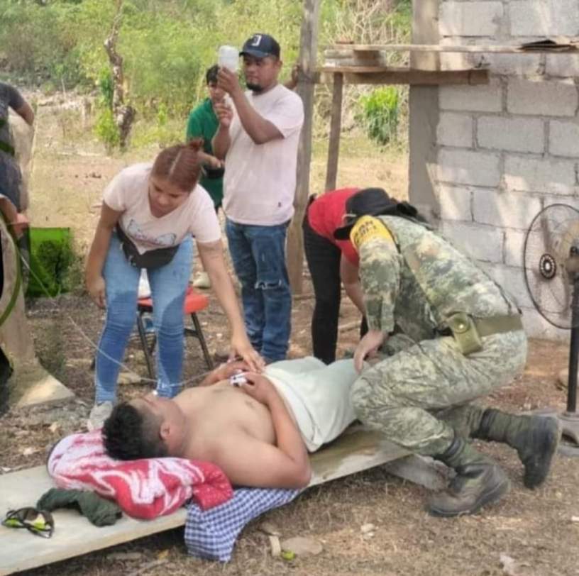 El elemento de la Sedena fue atendido por una brigada de salud voluntaria que se encuentra en la zona y que está a cargo de la Oliveira Bonilla, con ayuda de la doctora Esmeralda Mejía y el enfermero Manuel Santiago.