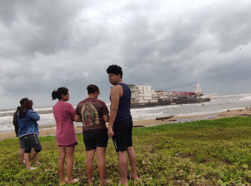 Ayer sábado el fuerte oleaje en la costa sur de Veracruz provocó que la embarcación “Tog Mor” fuera arrastrada por la corriente y encallará frente a las costas de villa Allende a la altura de la calle Valladolit de la colonia Nueva Pajaritos.