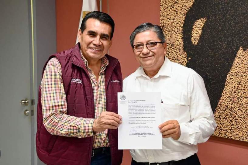 Le entrega el nombramiento el presidente de la Junta de Coordinación Política, diputado Esteban Bautista Hernández.