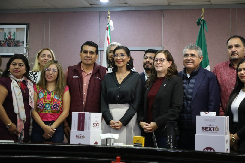 La jefa de la Oficina de Programa de Gobierno, Waltraud Martínez Olvera, acudió al Congreso local y entregó el compendio a la diputada presidenta, Tanya Carola Viveros Cházaro, el titular de la Junta de Coordinación Política, Esteban Bautista Hernández, y el secretario de la Mesa Directiva, Felipe Pineda Barradas.