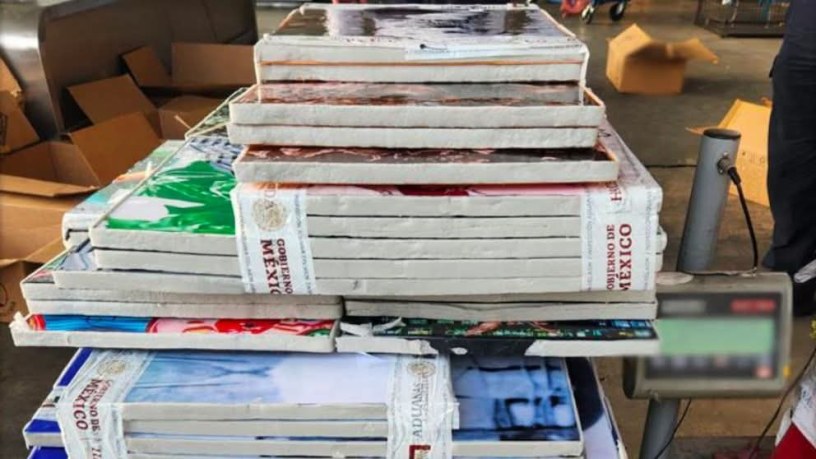 Elementos de la Secretaría de Marina (Semar) y de la Agencia Nacional de Aduanas localizaron 75 cuadros decorativos con un peso total de 242.6 kilogramos, que contenían cristales incrustados con metanfetamina y clorhidrato de metanfetamina.
