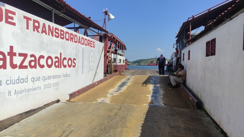 Por otro lado, en el muelle de Coatzacoalcos se observa atracado el otro transbordador, “Grijalva”, el cual se encuentra fuera de servicio desde el año pasado.