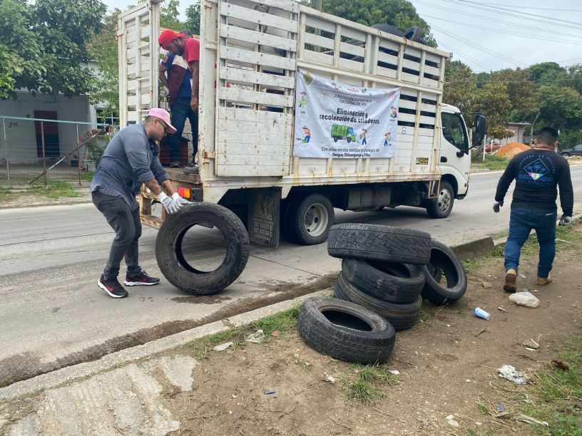 Personal operativo del programa Patio Limpio, recorrió las principales calles de estas colonias recolectando más de 450 llantas, desechos considerados como uno de los principales colectores de agua para la proliferación del mosquito Aedes Aegypti, encargado de transmitir enfermedades como el dengue, zika y chikungunya.