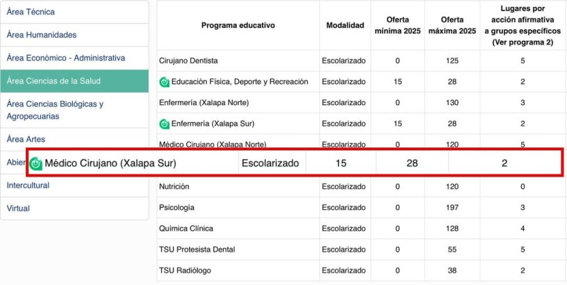 Este programa educativo de licenciatura en Médico Cirujano es de nueva creación y ofrecerá un mínimo de 15 y un máximo de 28 lugares para los estudiantes de nuevo ingreso. En caso de que no se cubra la oferta mínima de aspirantes, los inscritos tendrán la posibilidad de cambiar de programa educativo en el periodo comprendido del 10 de marzo al 11 de abril.