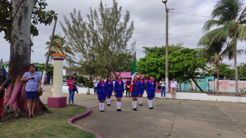 Durante la ceremonia, el juramento a la Bandera estuvo a cargo del niño Santiago Medel, mientras que alumnos de la primaria Allende Unzaga recitaron una poesía en honor a Benito Juárez y los estudiantes de la escuela Felipe Balderas entonaron un Himno dedicado al ilustre oaxaqueño.